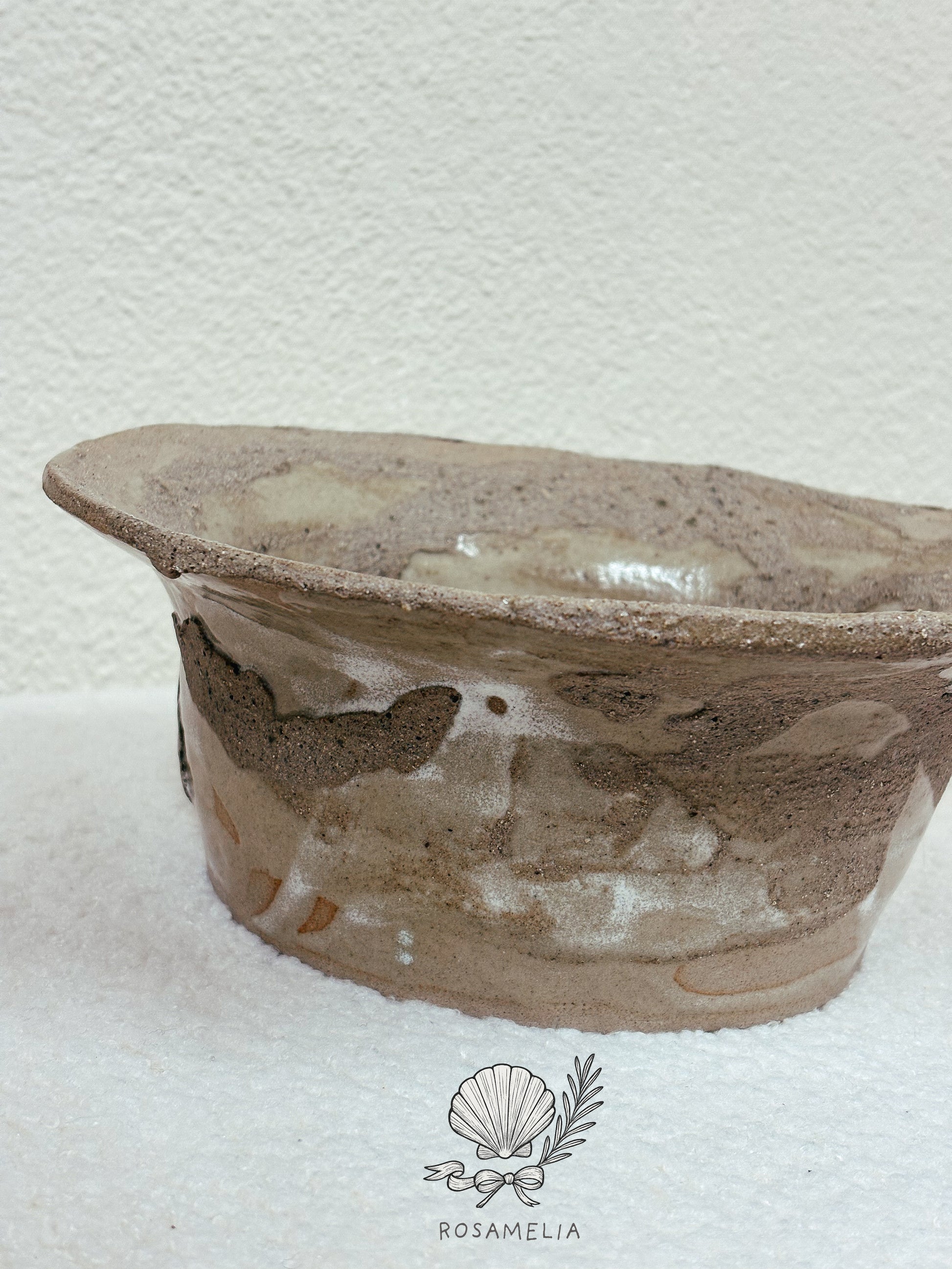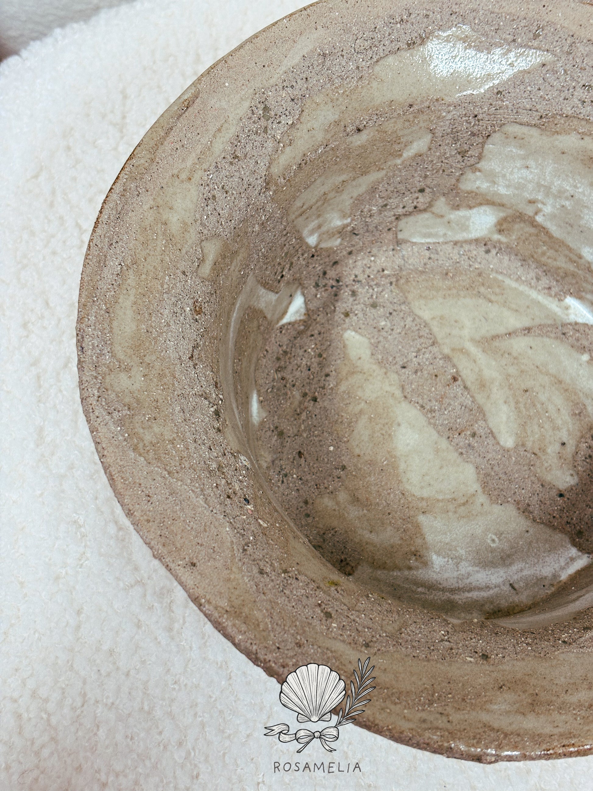 “Sabbia Viva” è una ciotola ampia e materica, modellata a mano e rifinita con una glaze effetto sabbia che ricrea la sensazione tattile della terra riscaldata dal sole.