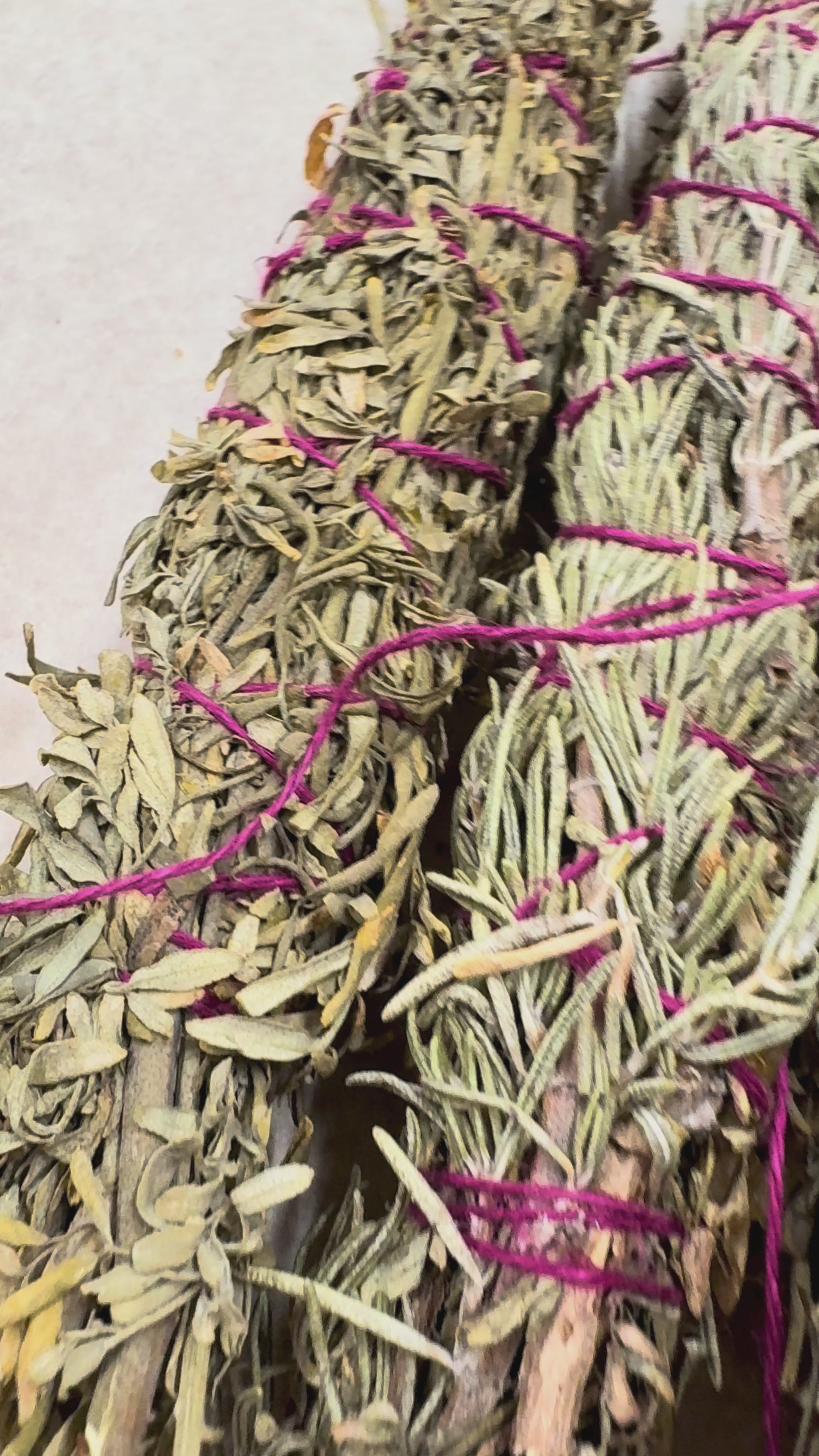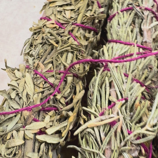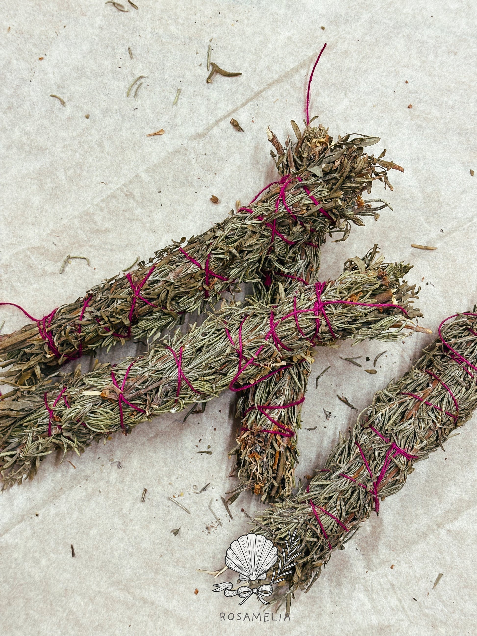 Intreccio di rosmarino e ruta, due erbe antiche della tradizione mediterranea.